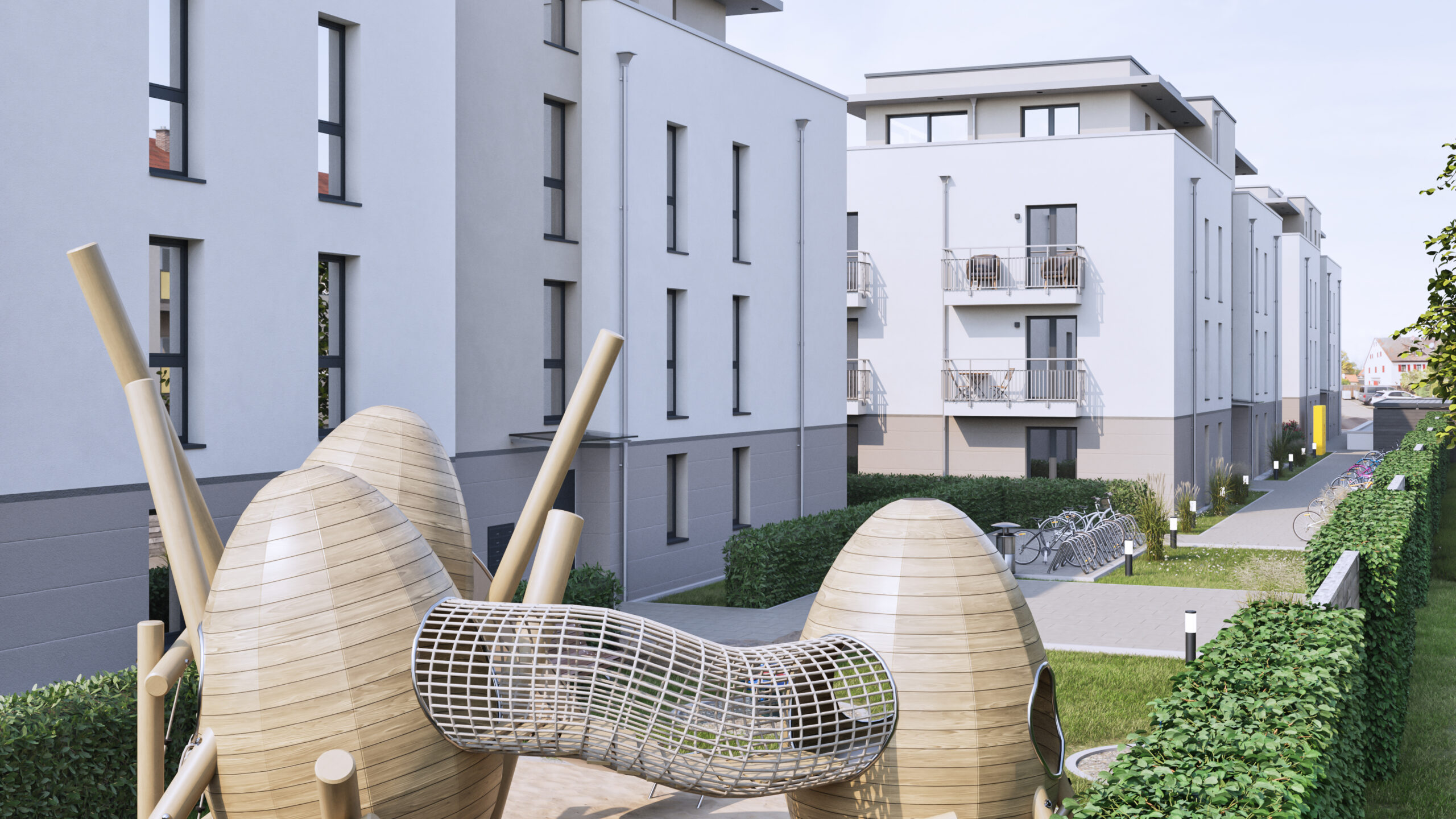 - Abbildung eines Bauvorhabens in der geplanten Umgebung